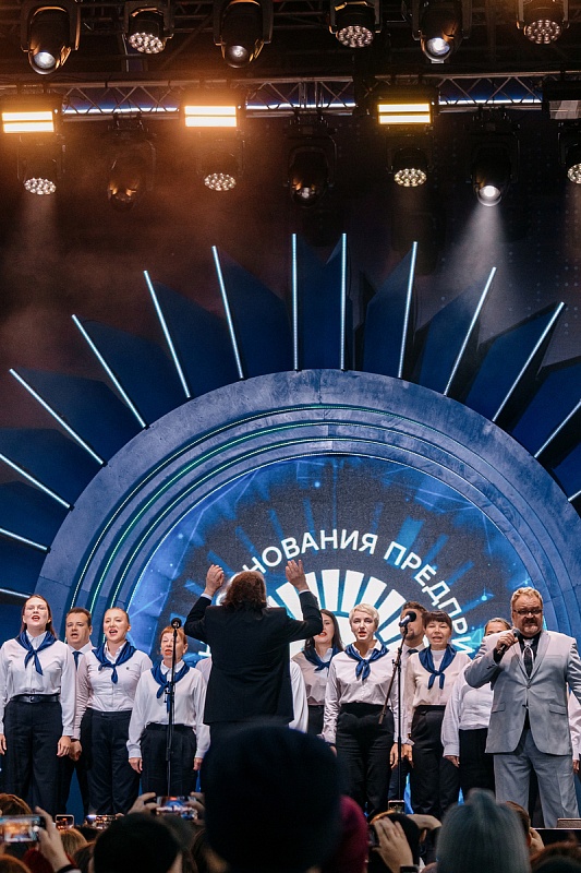 The agency successfully conducted a large-scale anniversary event for JSC "ODK-Klimov". Over eight days, the agency carried out extensive work on assembling the stage and stands, creating ideal conditions for holding the celebration on the client’s premises. The anniversary program impressed guests with its richness and spectacle. The central element was a staged show combining modern technologies and a creative approach. One of the most memorable moments was the flyover of the aerobatic team “Strizhi”. Unique video content specially prepared for the event complemented the atmosphere and emphasized the significance of the company’s anniversary. The event was hosted by the well-known TV presenter A. Egorov, star of the program “Military Acceptance”, who skillfully led the program, engaging guests in the festive atmosphere. The event concluded with a performance by the popular artist Alexander Marshal, whose songs became a bright final chord.